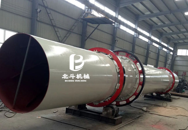 竹木烘干機(jī)由熱風(fēng)爐、電機(jī)減速機(jī)齒輪動(dòng)力部分、拖輪滾圈承載部分組成。滾筒式的結(jié)構(gòu)烘干機(jī)在運(yùn)行時(shí),物料在筒內(nèi)緩慢傾斜,配合內(nèi)部刮板將物料打散攪勻,使物料與熱氣流的接觸表面增大,提高干燥速率并促進(jìn)物料前進(jìn),從而達(dá)到充分烘干的作用。